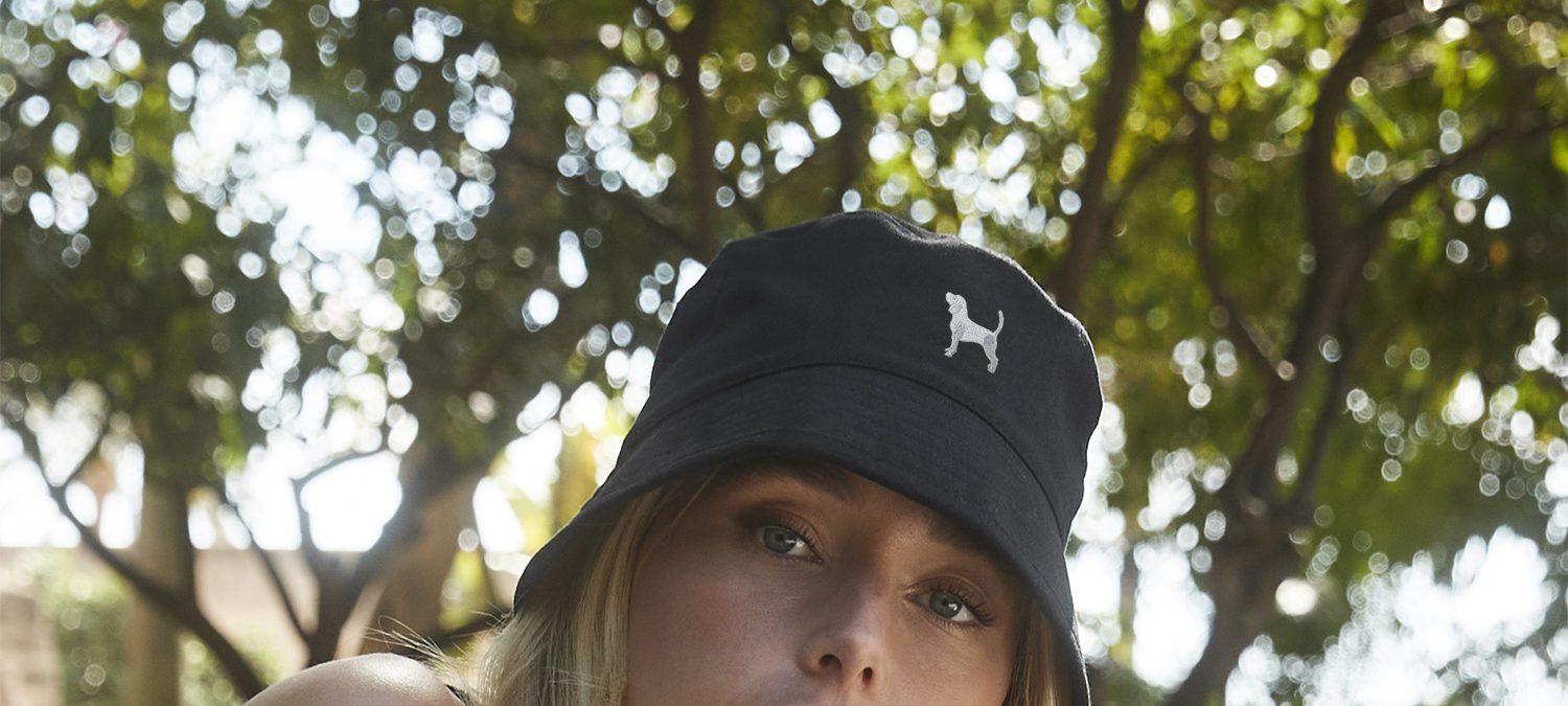 Beagle Owner Clothing Gifts. 100% Chino Cotton Embroidered Bucket Sun Hat With White Cotton Lining From The House Of Dog.