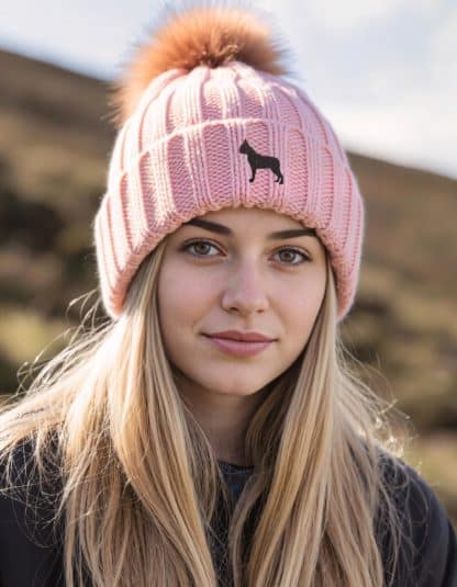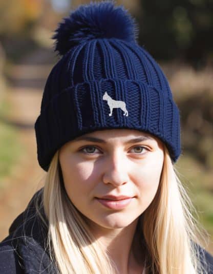 Boston Terrier Owner Gifts, Super Soft Faux Fur Pom Pom Chunky Knit Embroidered Unisex Beanie From The House of Dog