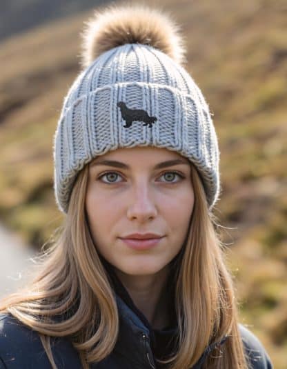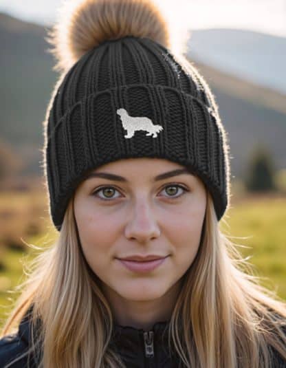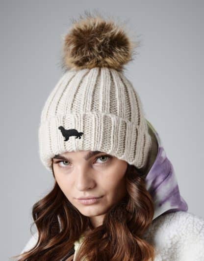 Cavalier King Charles Spaniel Owner Clothing Gifts, Super Soft Faux Fur Pom Pom Chunky Knit Embroidered Beanie From The House Of Dog.