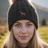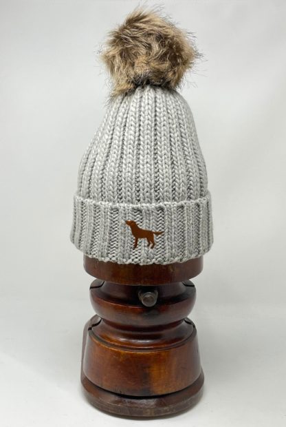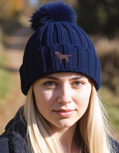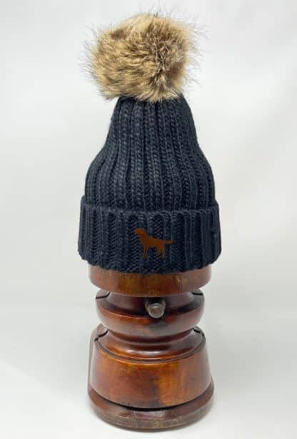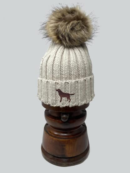 Chocolate Labrador Brown Lab Owner Gift, Clothing Gifts, Faux Fur Pom Pom Chunky Knit Super Soft Embroidered Beanie From The House Of Dog.