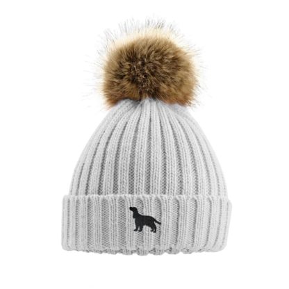 Cocker Spaniel Owner Gifts, Super Soft Faux Fur Ski Pom Pom Chunky Knit Embroidered Unisex Beanie From The House of Dog