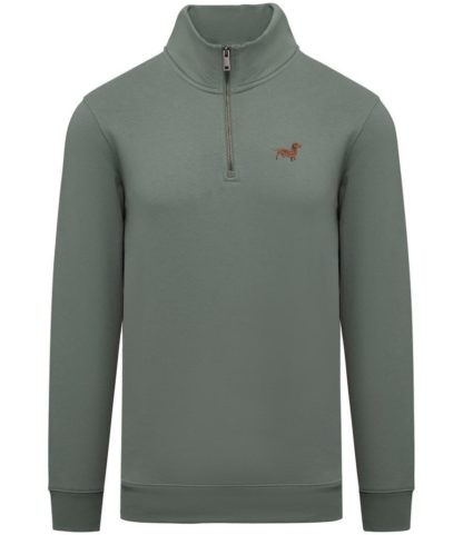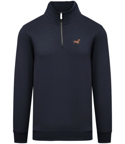 Dachshund doxie sausage dog clothing gifts embroidered unisex eco-friendly 1/4 zip high neck heavyweight sweatshirt from the house of dog.