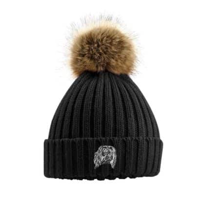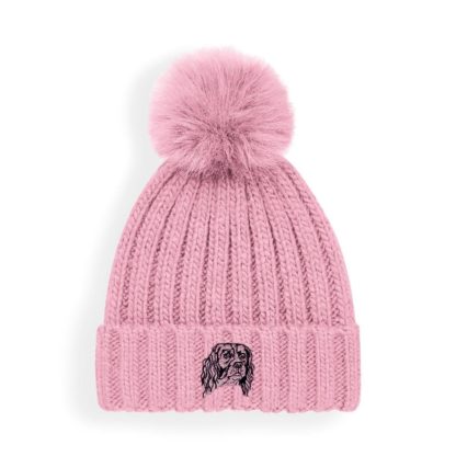 English Springer Spaniel Owner Gifts, Super Soft Faux Fur Ski Pom Pom Chunky Knit Embroidered Unisex Beanie Hat From The House Of Dog.