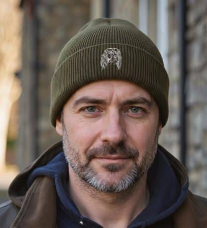English Springer Spaniel Owner Gifts, Unisex Beanie Ski Hat With Embroidered Design From The House Of Dog.
