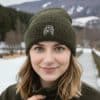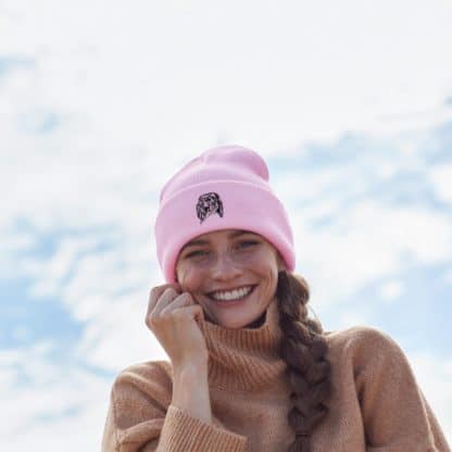 Super Soft, Warm Winter Beanie Ski Hat Featuring Embroidered Dog Design.