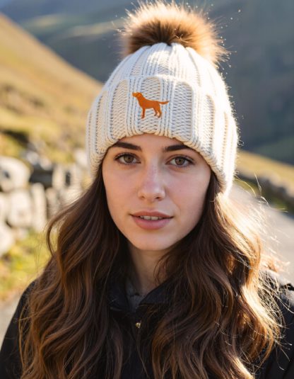 Hard wearing and super soft, warm winter quality pom pom hat with unique embroidered design.