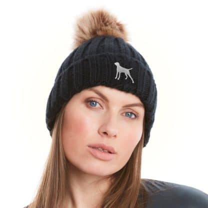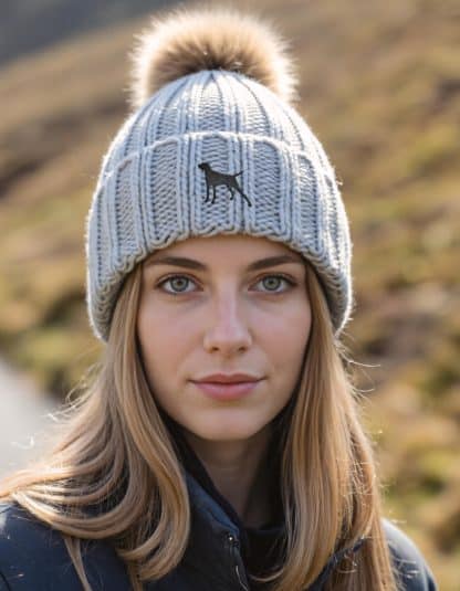 German Shorthaired Pointer Owner Clothing Gifts, Faux Fur Pom Pom Chunky Knit Super Soft Unisex Embroidered Beanie From The House Of Dog.