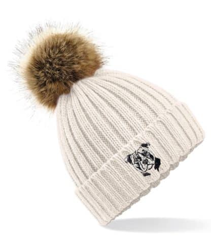 Hard wearing and super soft, warm winter quality pom pom hat with unique embroidered design. A unique product from The House of Dog. A brilliant and unique gift idea for Father’s or Mother’s Day and Birthdays and Christmas.